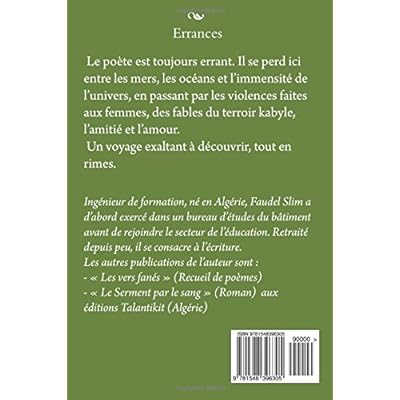 De superbes poèmes agréables à lire. Des sujets variés même si la tendance à l'errance comme souligné dans le titre et la description de l'ouvrage est perceptible. J'ai aimé particulièrement le slam qui m'a rappelé "les voyages en train" de GCM, ainsi que tous les poèmes, et ils sont nombreux, qui évoquent la mer ou l'univers. "Mon vermeil" aussi est magnifique malgré sa fin triste. Un petit délice pour moi. Je vous le recommande vivement si vous êtes amateur d'évasion en rimes.